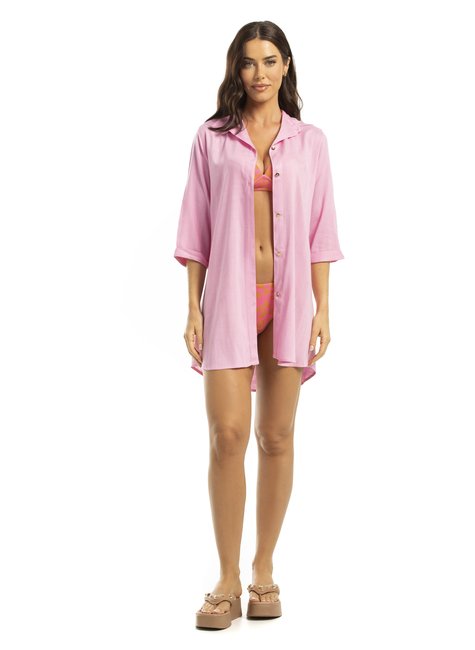Clássica e chique! As chemises ou camisas são sinônimo de elegância. Peças atemporais que fazem muito sucesso na moda praia. A modelagem soltinha e mais alongada oferece conforto e sofisticação ao vestir. Com mangas na altura do cotovelo. O acabamento conta com botões dourados em metal banho ouro light. Feita em tecido leve, caimento impecável e toque macio. Use como saída de praia ou compondo looks com jeans em uma pegada mais urbana.