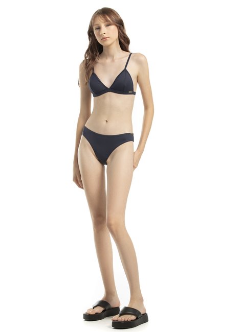 A modelagem básica ou tradicional oferece bastante conforto e segurança ao vestir . Uma peça com versatilidade, fácil de compor looks com modelagens diferentes na parte de cima do biquíni. O modelo é ideal para quem gosta de peças seguras e um pouquinho maiores. Modelagem adequada também para adolescentes, por não ser fio duplo. Pode ser usada para a prática de atividades físicas na praia.
