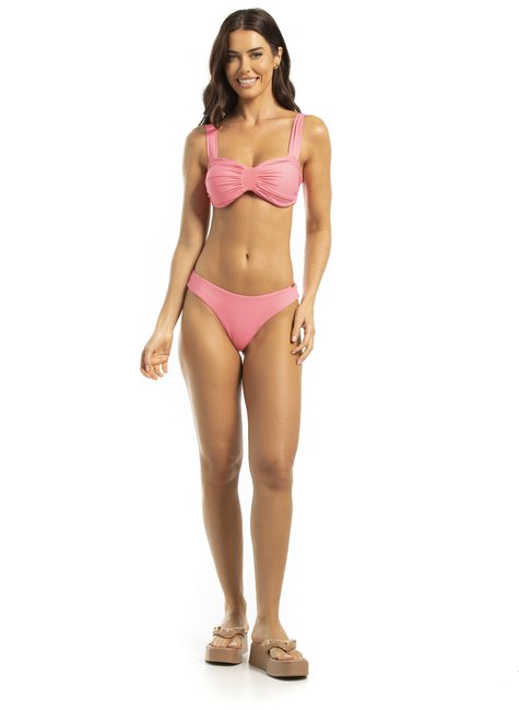 Calcinha biquíni básica costa modelo fio conforto (fio duplo - sem elástico nas cavas na parte de trás). A modelagem desta peça é mais larguinha nas laterais, oferecendo mais conforto ao vestir. Elásticos da frente e cintura embutidos sem costura aparente. Com forro em poliamida com elastano na parte frontal, evitando qualquer transparência. O tecido é composto por poliamida e elastano de alta qualidade, o que proporciona maior liberdade de movimentos, proteção solar e conforto térmico, ajuste perfeito ao corpo, além de maior durabilidade da peça, mesmo com uso constante em piscinas ou contato com a água do mar. Detalhe para a placa da marca em metal com banho dourado ouro light, poporcionando uma acabamento mais elegante. Cobertura do bumbum: Pequena.