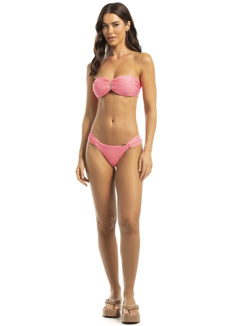 Top de biquíni modelo tomara que caia com design minimalista e sofisticado. Possui detalhe central com passante em metal banho ouro light, que acrescenta charme ao modelo e cria um delicado franzido, valorizando o busto. Acompanha alças removíveis, permitindo uso versátil com ou sem suporte adicional, ideal para evitar marcas nos ombros. Desenvolvido para garantir conforto, segurança e estilo, é perfeito para compor diferentes combinações com calcinhas variadas, adaptando-se a momentos de lazer na praia ou piscina. O bojo é fixo.