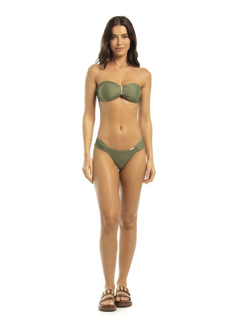 Top de biquíni modelo tomara que caia com design minimalista e sofisticado. Possui detalhe central com passante em metal banho ouro light, que acrescenta charme ao modelo e cria um delicado franzido, valorizando o busto. Acompanha alças removíveis, permitindo uso versátil com ou sem suporte adicional, ideal para evitar marcas nos ombros. Desenvolvido para garantir conforto, segurança e estilo, é perfeito para compor diferentes combinações com calcinhas variadas, adaptando-se a momentos de lazer na praia ou piscina. O bojo é fixo.